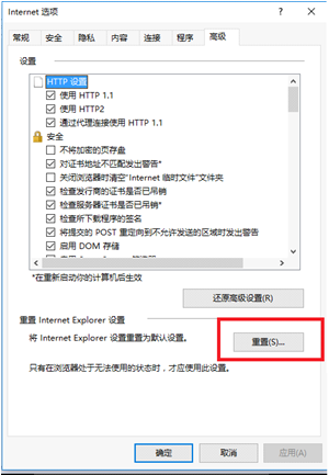 处理方法:重置浏览器:Internet选项-高级-重置。