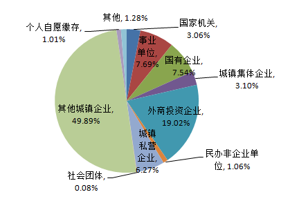 2020年四季度实缴职工数按不同性质单位分类占比图