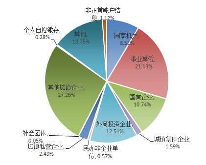 2022年二季度实缴金额数按不同性质单位分类占比图