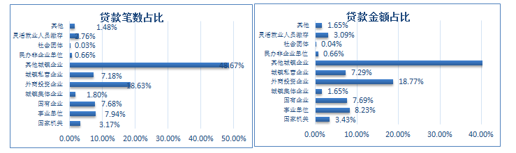 2022年四季度职工贷款笔数及贷款金额按单位性质分类占比图