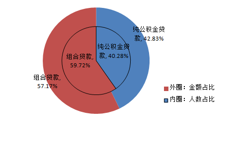 从贷款群体来看,刚需与改善型住房需求职工分别占贷款总人数的32.68%和59.67%。从单位性质来看,以城镇私营企业及其他城镇企业职工为主,贷款笔数和贷款金额占比分别为55.85%、54.79%。从购房面积来看,职工贷款购买小于90㎡、90-120㎡房屋居多,分别占贷款总人数的32.68%、36.64%。从主借人缴存基数来看,贷款主要以中、低收入职工为主,分别占贷款总人数的32.71%、65.12%。从贷款类型来看,纯公积金贷款和组合贷款占比分别为40.28%、59.72%。具体放贷结构如下:
