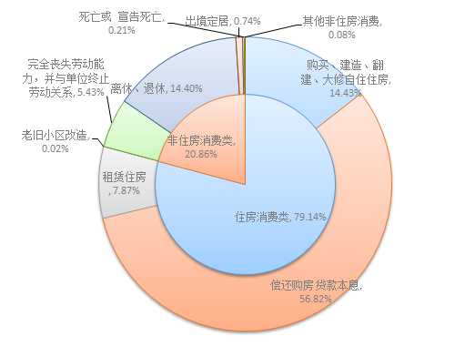 2023年四季度,住房消费类提取金额为49.4亿元,环比增长5.35%,占当季提取额的79.14%。其中还贷提取占比最高,提取金额35.47亿元,占当季提取额的56.82%。具体提取结构如下: