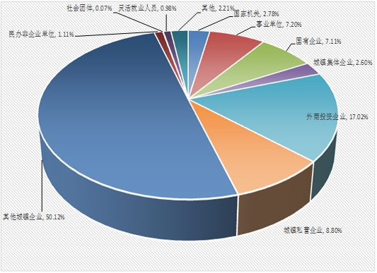 从缴存主体看,以非公群体为主,缴存人数占当季实缴职工数的80.31%,其中城镇私营企业及其他城镇企业职工缴存占比最高。具体缴存结构如下: