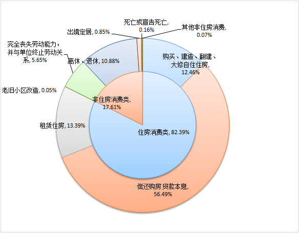 2025年一季度,住房消费类提取金额为60.86亿元,环比增长7.93%,占当季提取额的82.39%。其中还贷提取占比最高,提取金额41.73亿元,占当季提取额的56.49%。具体提取结构如下: