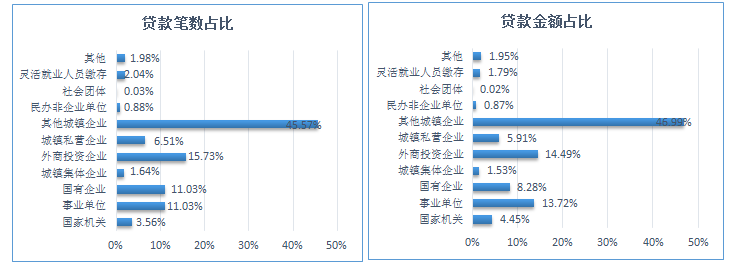 2025年二季度职工贷款笔数及贷款金额按单位性质分类占比图