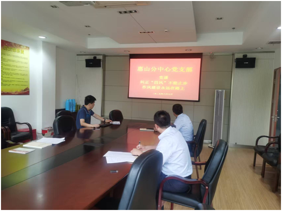 为激励惠山分中心党支部党员干部继续发扬党的光荣传统,深入推进作风革命、效能革命,6月9日,惠山分中心党支部崔屹同志为全体党员上了一堂纠正“四风”不能止步,作风建设永远在路上的党课。